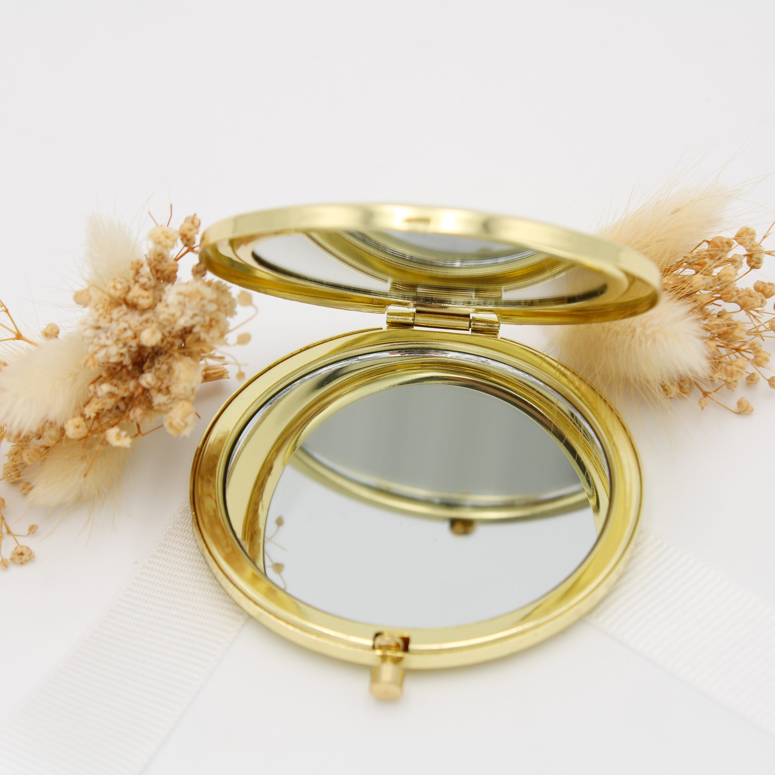 Gastgeschenk Spiegel | Personalisierbarer Handspiegel in Geschenkbox mit Schleife & Trockenblume – Hochzeit, Verlobung, Henna Abend & besondere Anlässe
