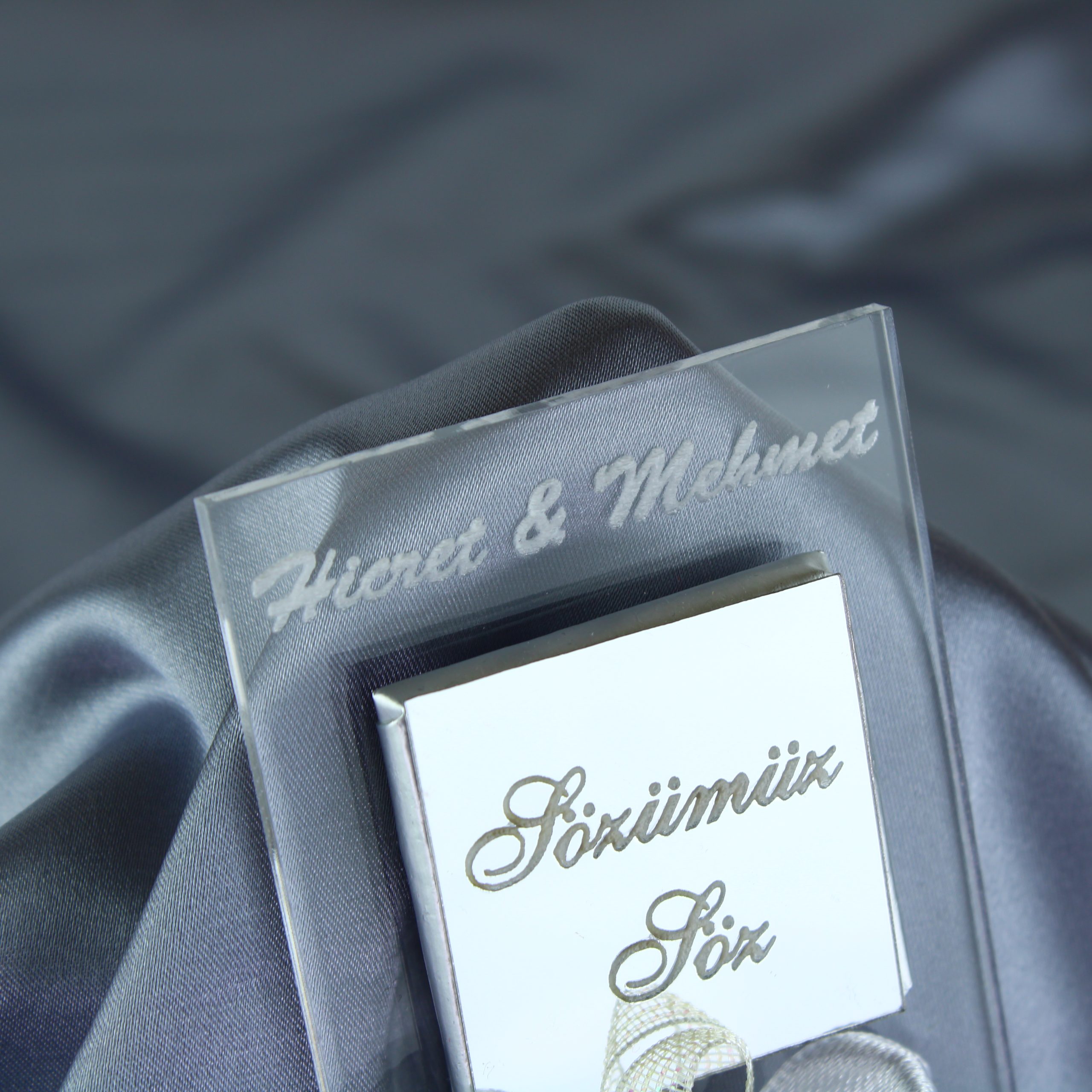 Sowohl die Plexi-Fläche als auch die Spiegel-Plexi-Applikation auf der Schokolade können individuell graviert werden.
