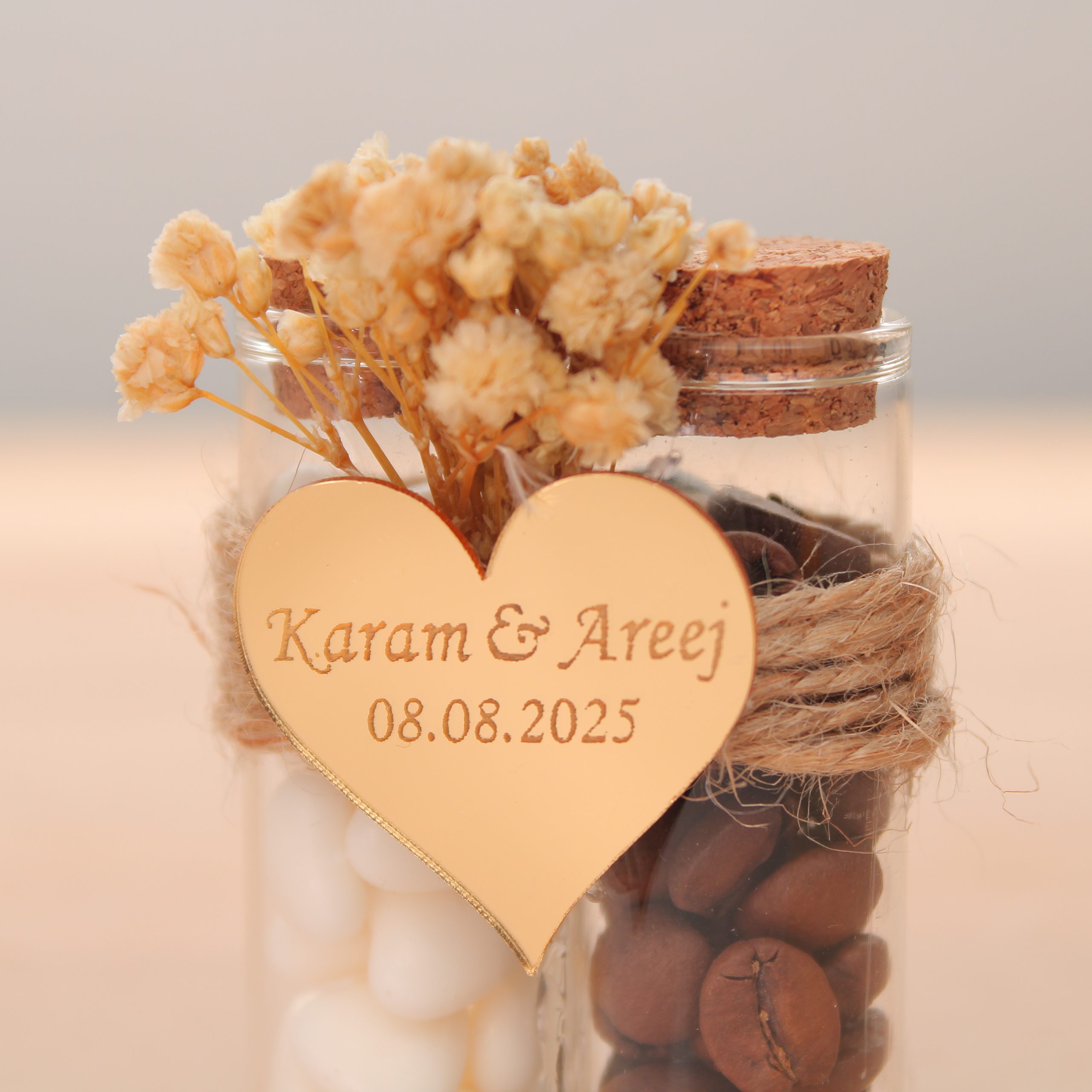 Gastgeschenk | Kaffee & Zucker Reagenzglas mit Magnet – Personalisierbares Plexi – Für Hochzeit, Verlobung, Babyshower & besondere Anlässe