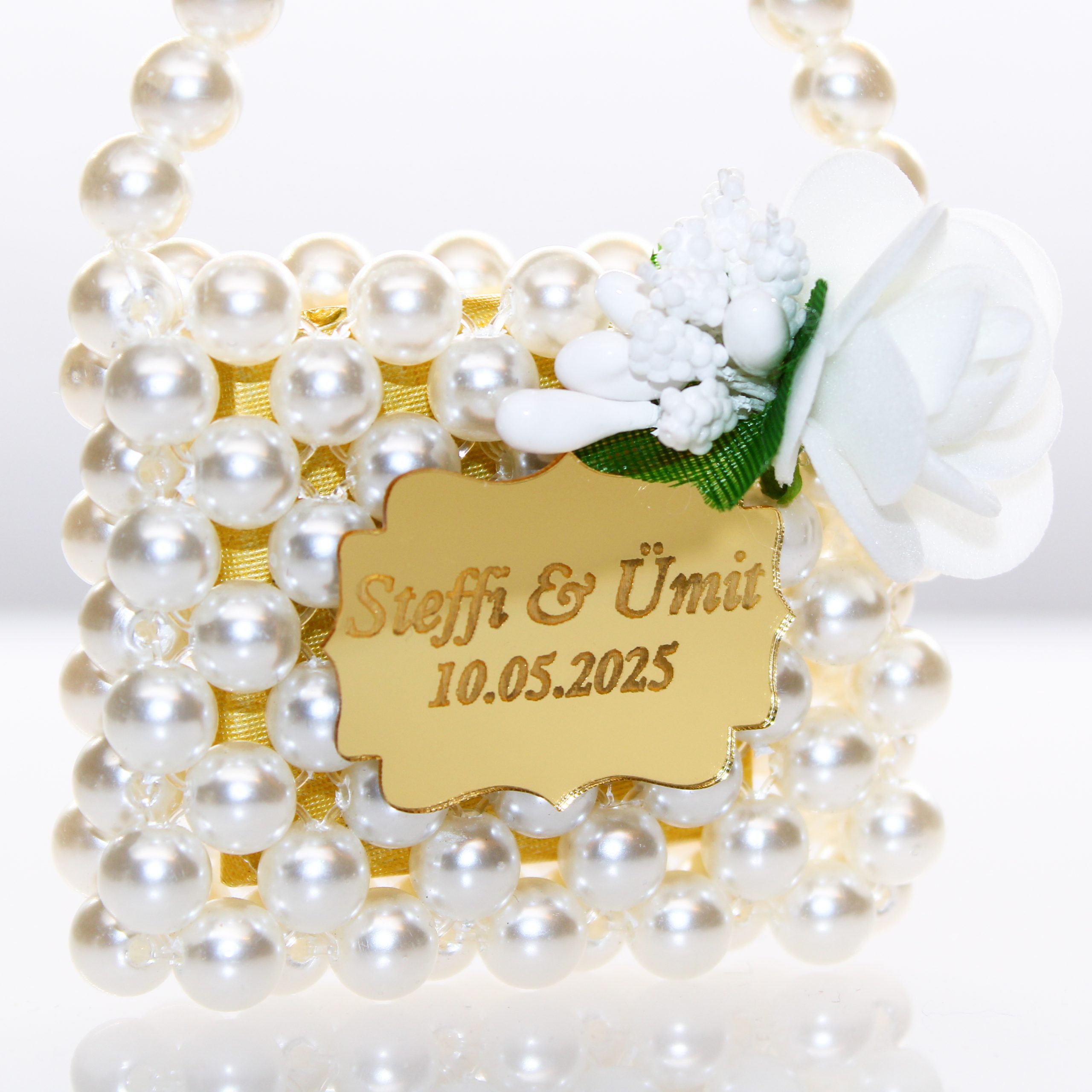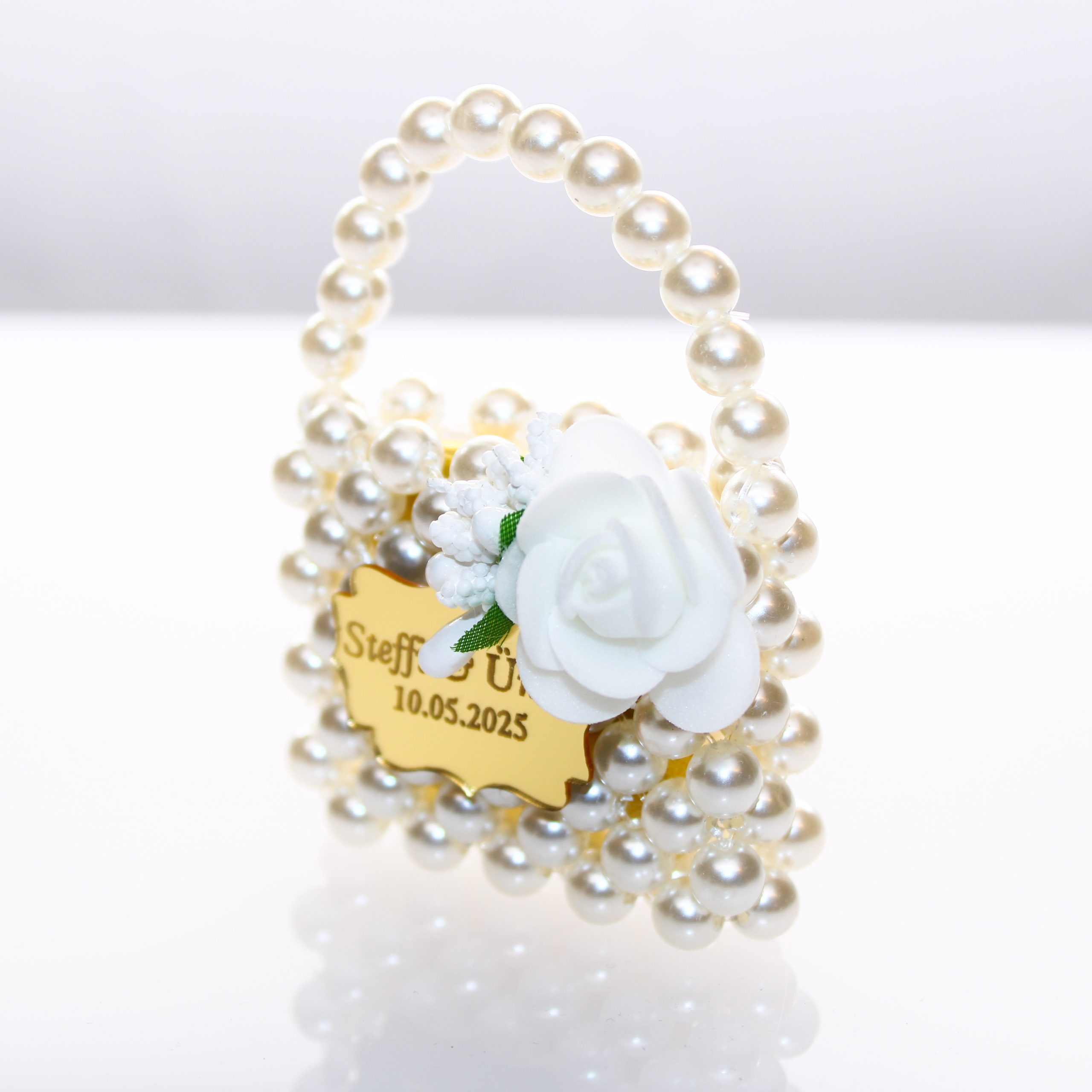 Ob als stilvolles Gastgeschenk, Tischdeko oder kleines Dankeschön – diese Mini-Tasche vereint Eleganz und Raffinesse in ihrer feinsten Form. Ihre zarte Ausstrahlung und das edle Perlen-Design machen sie zu einem unvergesslichen Detail bei besonderen Anlässen.
