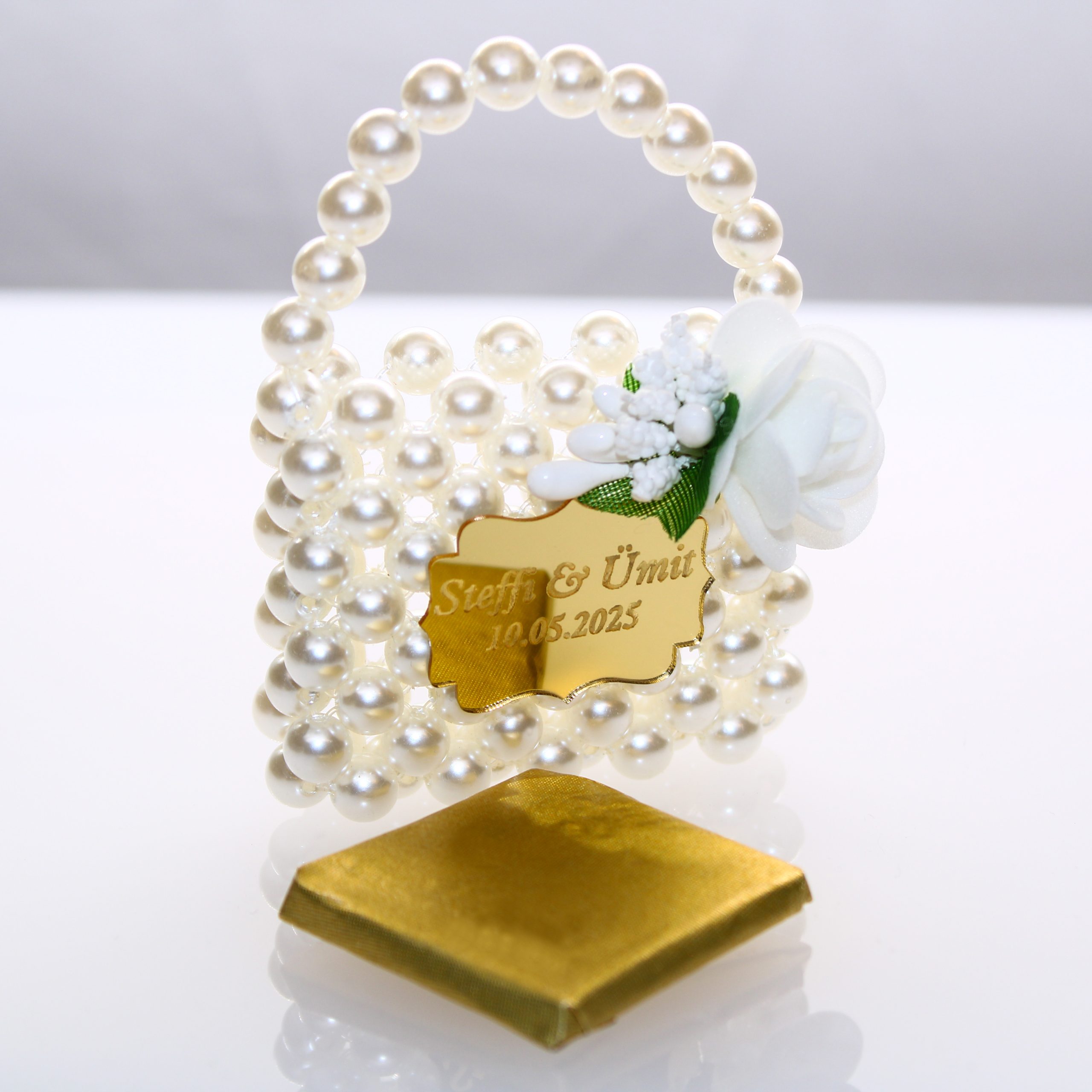 Gelin İnci Çanta – Nikah Hediyelik – Çikolata Çanta – İnci Süsleme