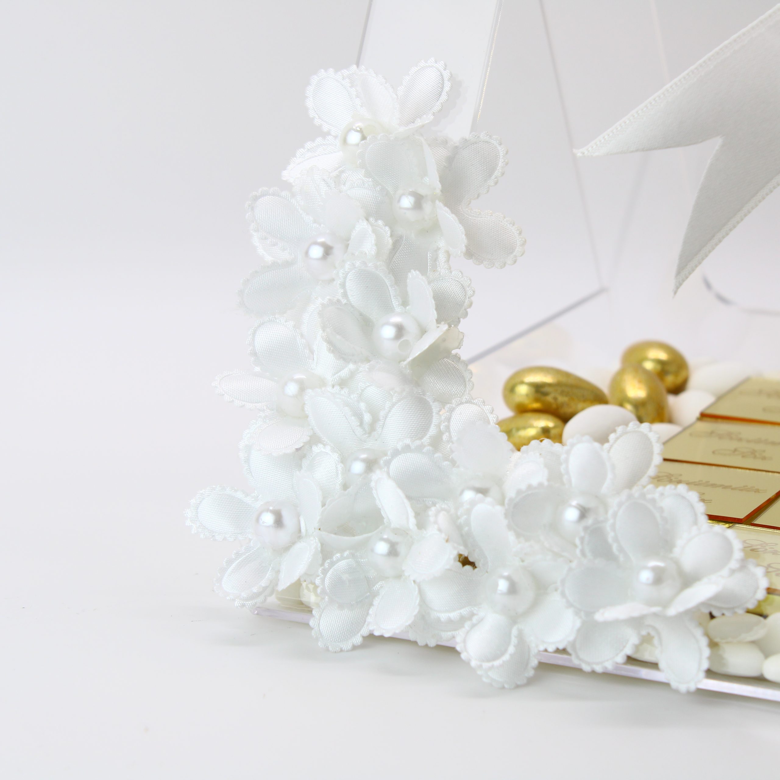 - Dekoriert mit Kunstblumen, Perlen und Schleifen mit Strass-Details