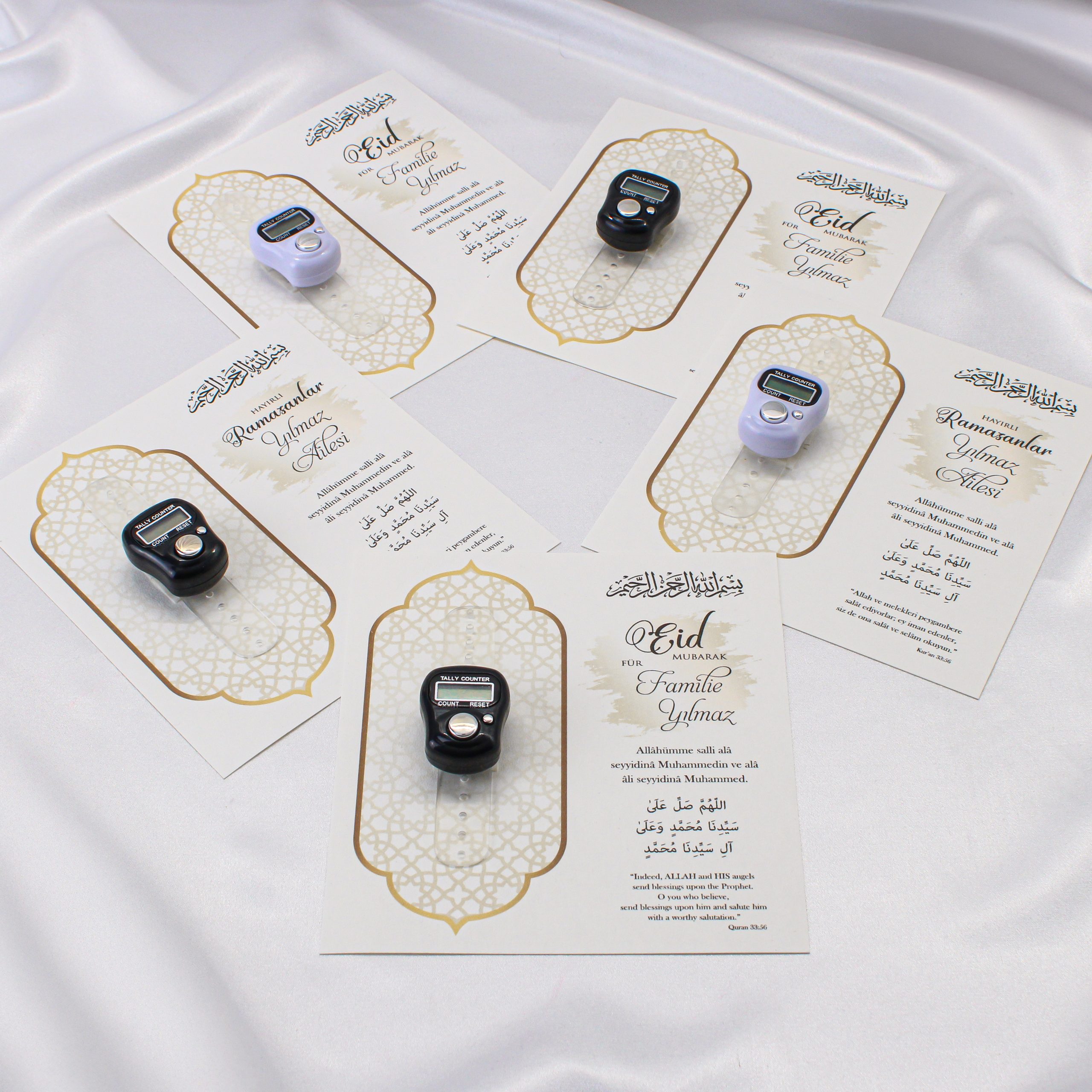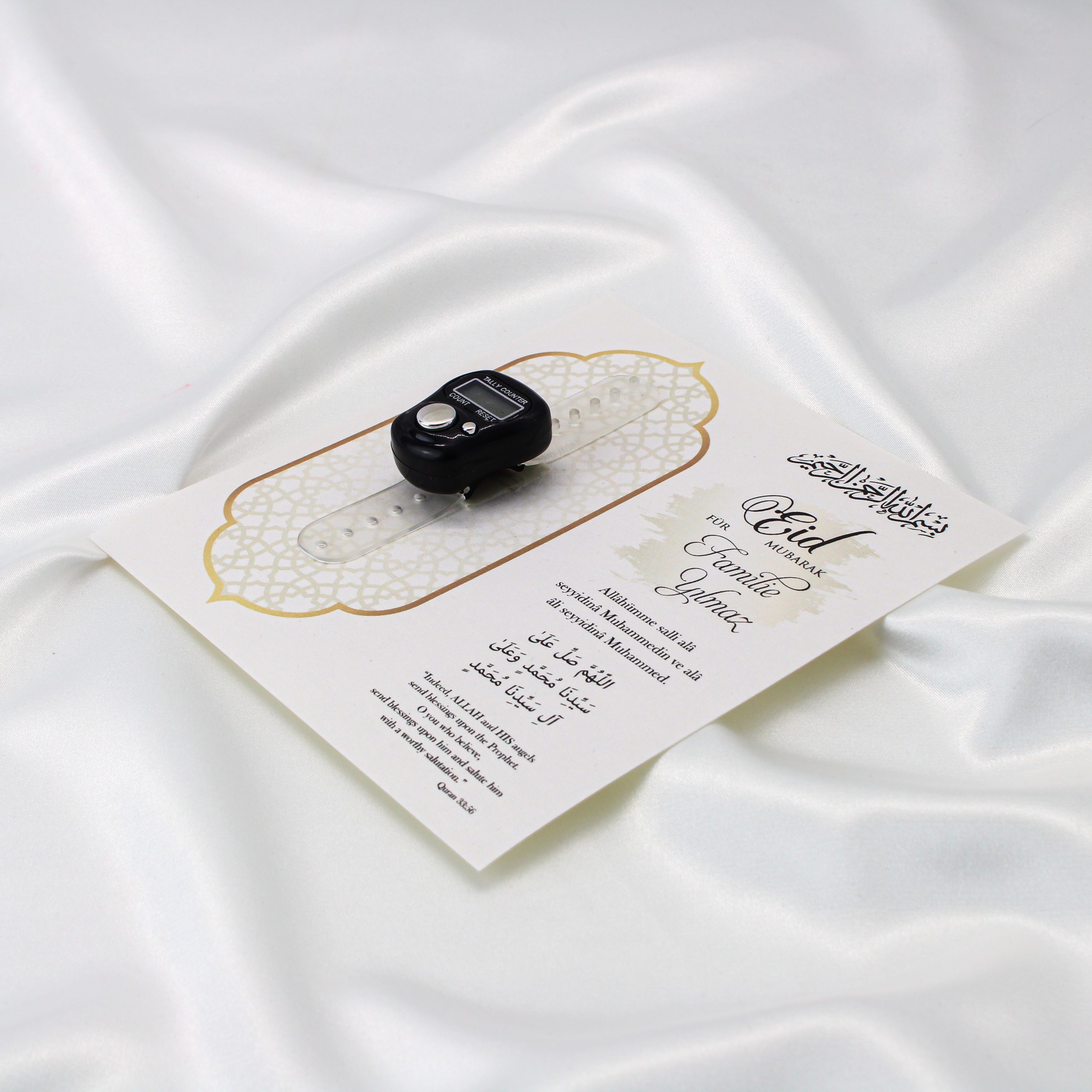 Der personalisierbare Fingerzähler Geschenk ist eine moderne Alternative zum klassischen Tasbih. Besonders im Ramadan oder zu religiösen Anlässen wird dieser Zikr Zähler zu einem bedeutungsvollen Geschenk. Durch die Kombination aus praktischem Dhikr-Zähler und stilvoller Geschenkkarte entsteht ein spirituelles Präsent mit emotionalem Wert.