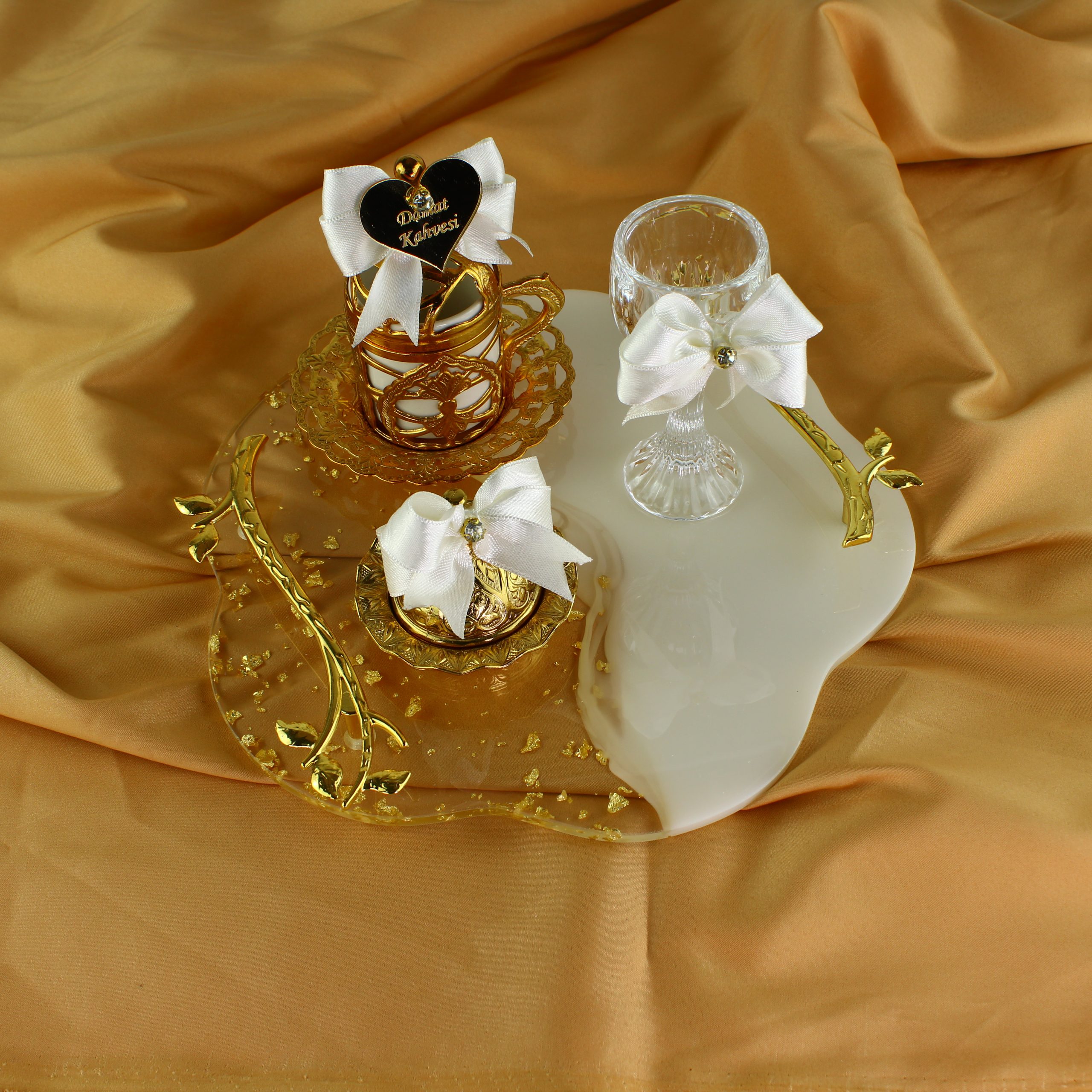 Ob für die traditionelle Kız İsteme-Zeremonie oder die Verlobung – dieses Mokkatablett vereint Kultur, Luxus und persönliche Note in einem einzigartigen Design.