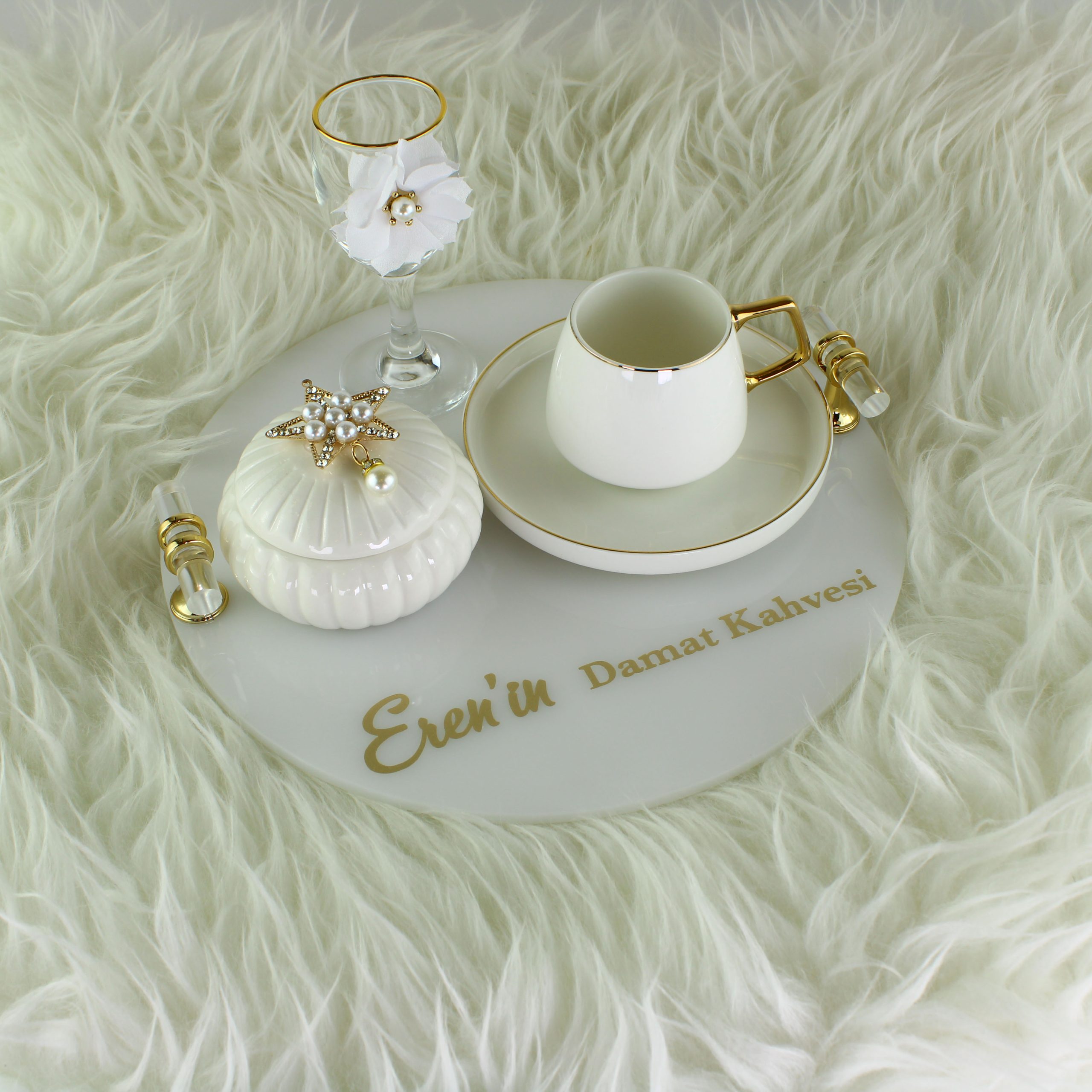 Mokkatablett | Damat Kahve Tepsisi für Verlobung & Brautabend | Personalisierbar | rund Acryl